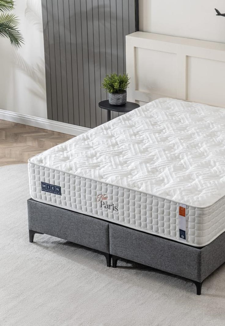 New Paris предлага отличен комфорт и стабилна опора благодарение на 7-зонова система от покет пружини (1.8 – 2 мм) и висококачествена 26 DNS пяна. Конструкцията включва CR твърда пяна с ниво на твърдост 5/5, осигуряваща по-стабилна поддръжка на тялото. Матракът е двулицев и е обвит в 465 GSM американски двустранен плат, който е здрав, дишащ и приятен на допир.